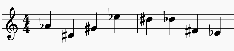 Adesso suona questa sequeza di note: alcune hanno il diesis, altre il bemolli: attenzione a non fare confusione!