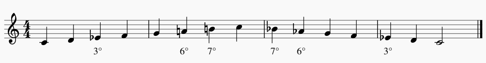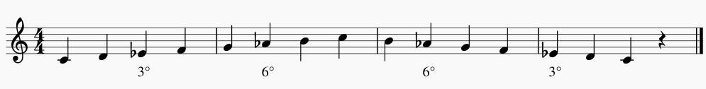 Come puoi vedere, la scala minore è diversa a seconda che salga o scenda: nella salita, 6° e 7° suono sono più alti di un semitono rispetto alla discesa. Puoi pensarla così: quando la scala sale, 6° e 7° sono “attratti” dalla tonica e sono dunque più alti; quando la scala scende, il 6° e il 7° tendono ad andare più in basso.